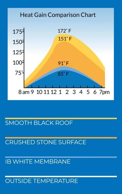 A white IB Roof Systems membrane can reduce your energy consumption and your rising electric bills, by reflecting up to 90% of the heat that normally enters a home through the roof. An IB Roof Systems roof will lower your home’s heat gain, and possibly pay for itself.